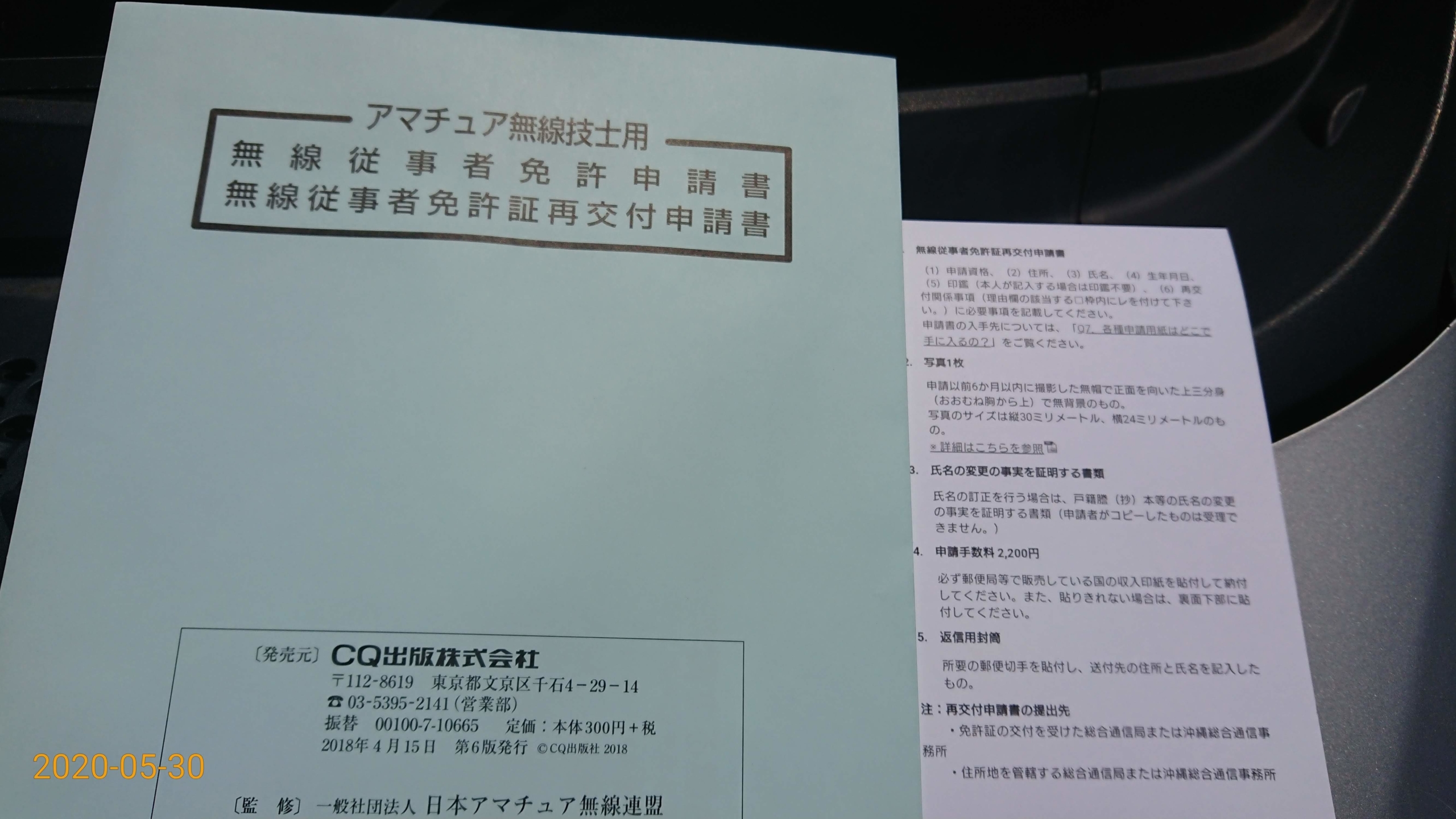 アマチュア無線の従事者免許4級の再申請をしました-2020-05-30