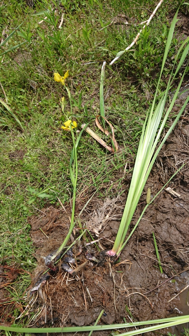 今日の切り取る場所では、黄色い花が咲くしょうぶが、混じってきました。