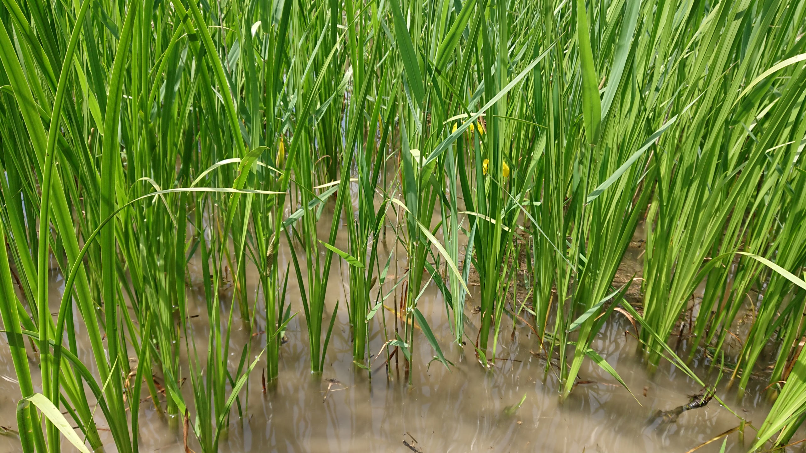 今日の切り取る場所では、黄色い花が咲くしょうぶが、混じってきました。