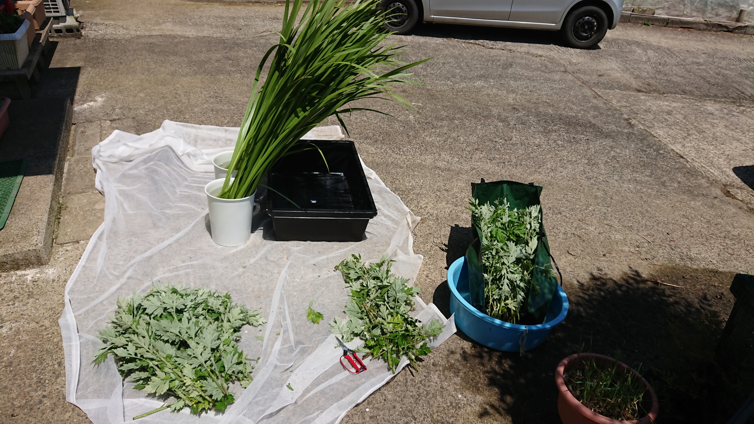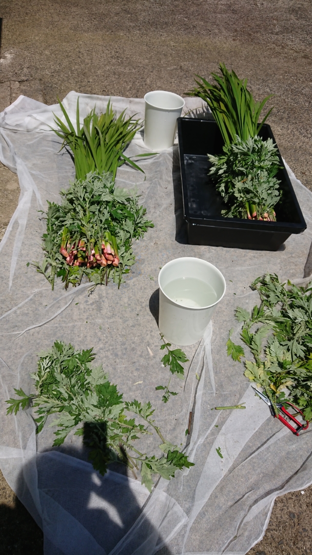 午前11時40分に納品だったので、朝、匂い菖蒲とヨモギをセットにしました。