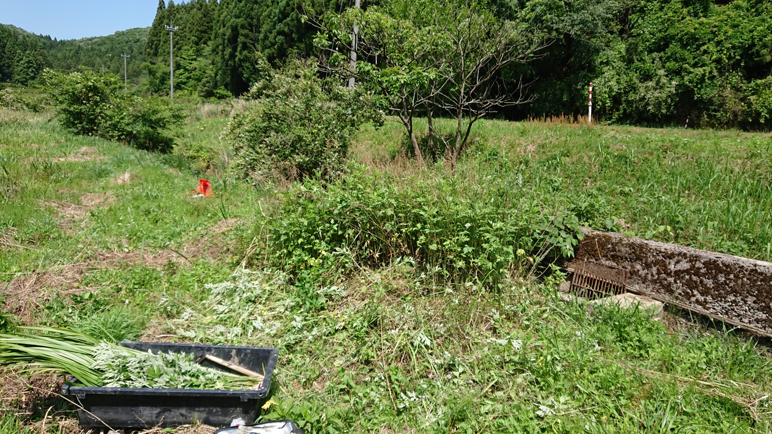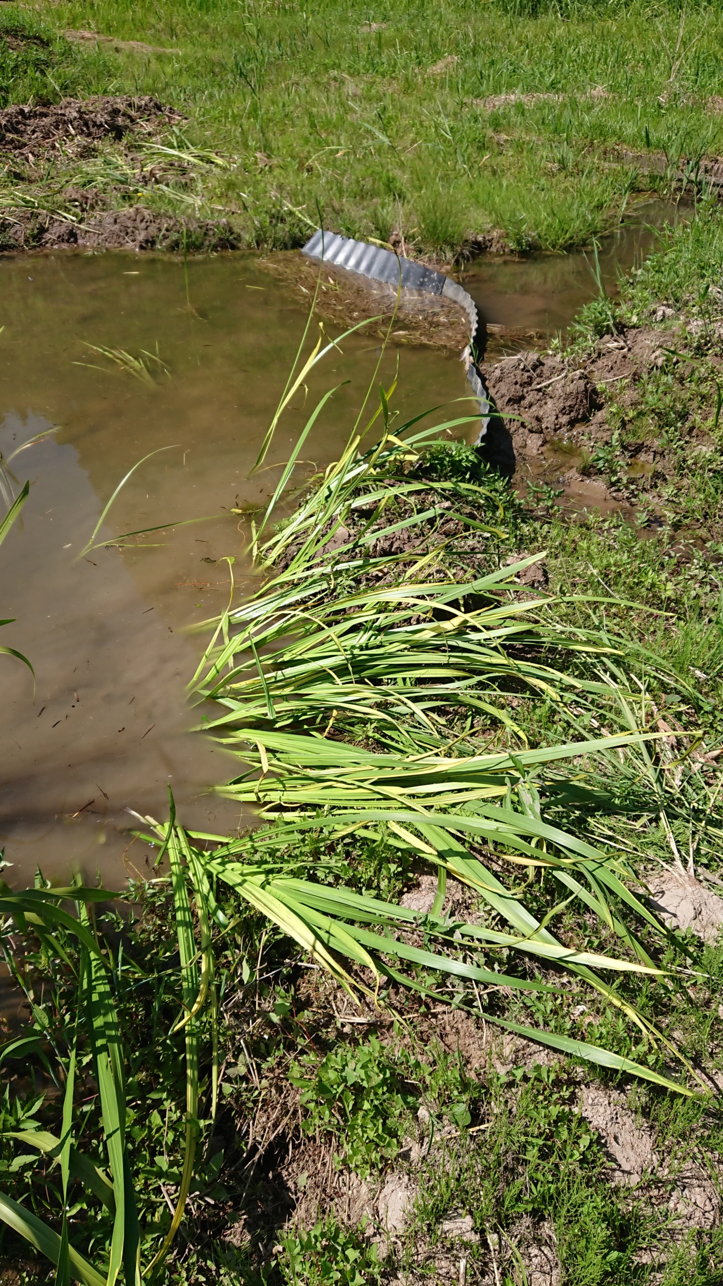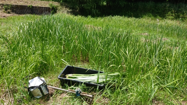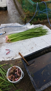 新しい匂い菖蒲を届けたあとは、古いものを回収して、根っこがついているのは、