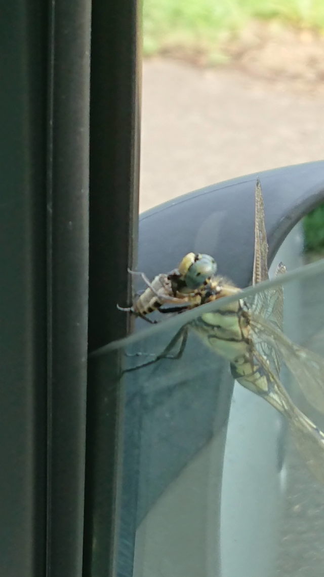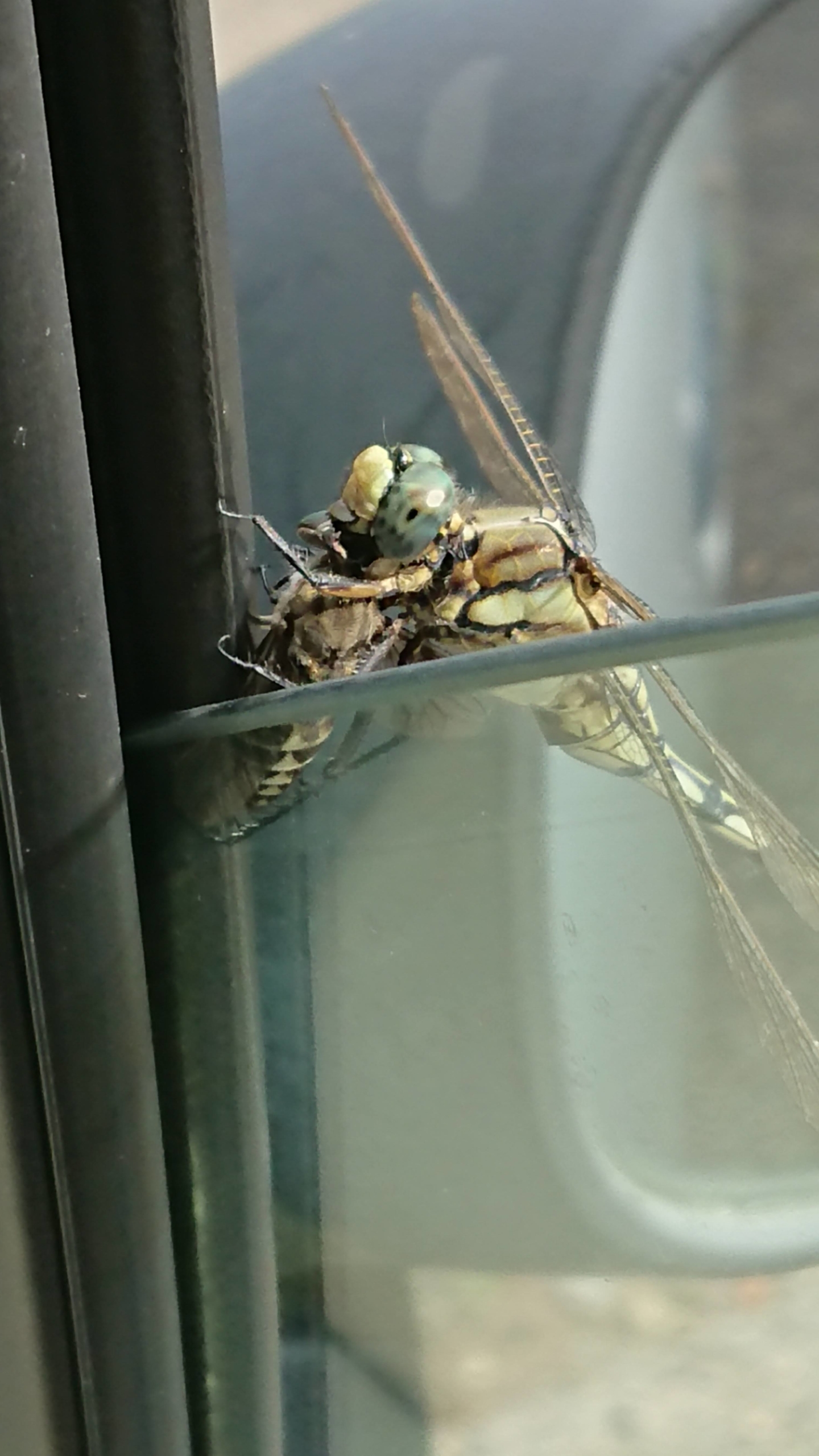 車の窓の外でトンボがアブを食べていました-2020-08-09