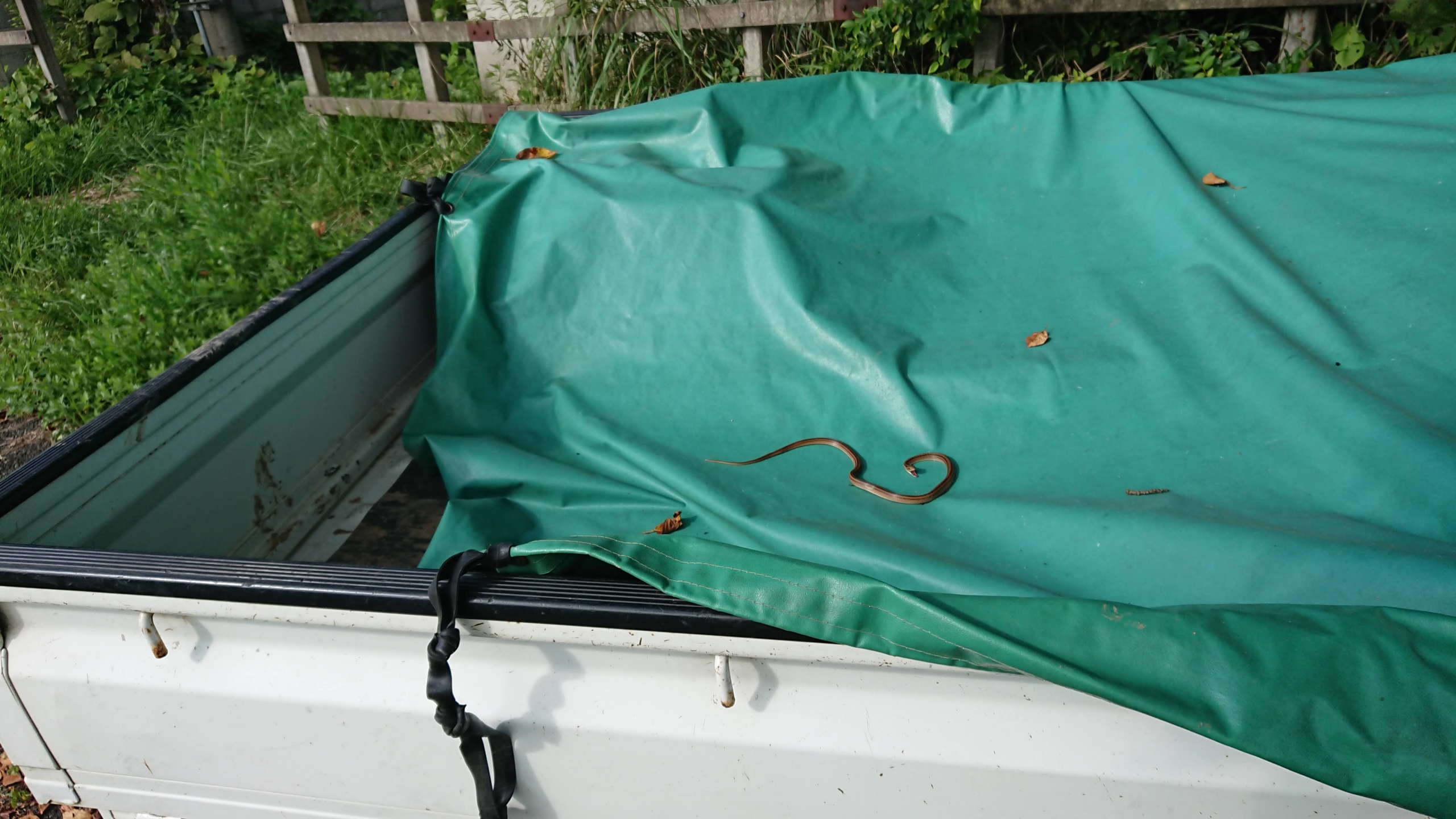 2020年9月1日 / 最終更新日時 : 2020年9月8日 shimasakimitsunori 日々是好日 軽トラのホロに死んだ蛇-2020-09-01 草刈りをして戻ってきたら、蛇がいた。よく見たら死んでいた。 鳥が落としたのか?それとも? FacebookXBlueskyHatenaCopy コメントを残す コメントをキャンセルメールアドレスが公開されることはありません。 ※ が付いている欄は必須項目ですコメント ※ 名前 ※ メール ※ サイト 次回のコメントで使用するためブラウザーに自分の名前、メールアドレス、サイトを保存する。 上に表示された文字を入力してください。 Δ
