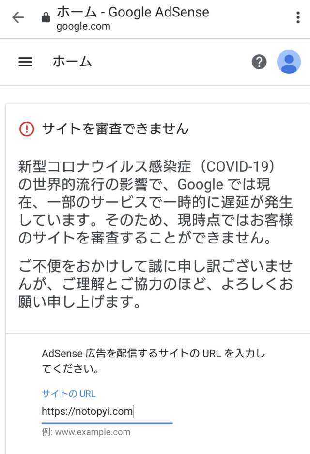 グーグルアドセンスの申請はしましたが、COVID-19を理由に審査拒否されました。