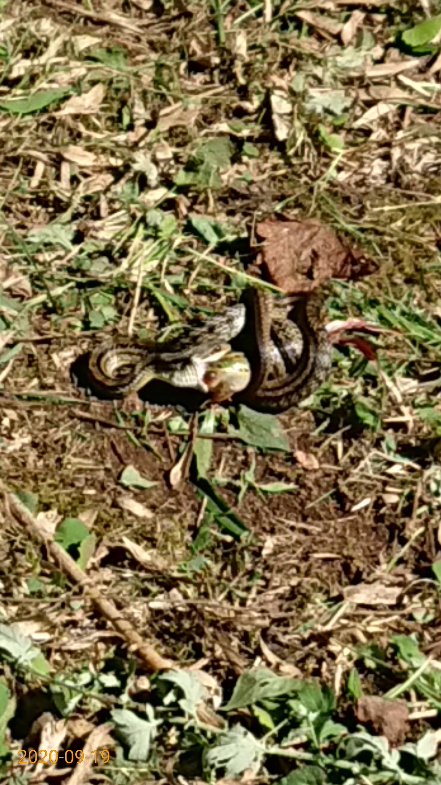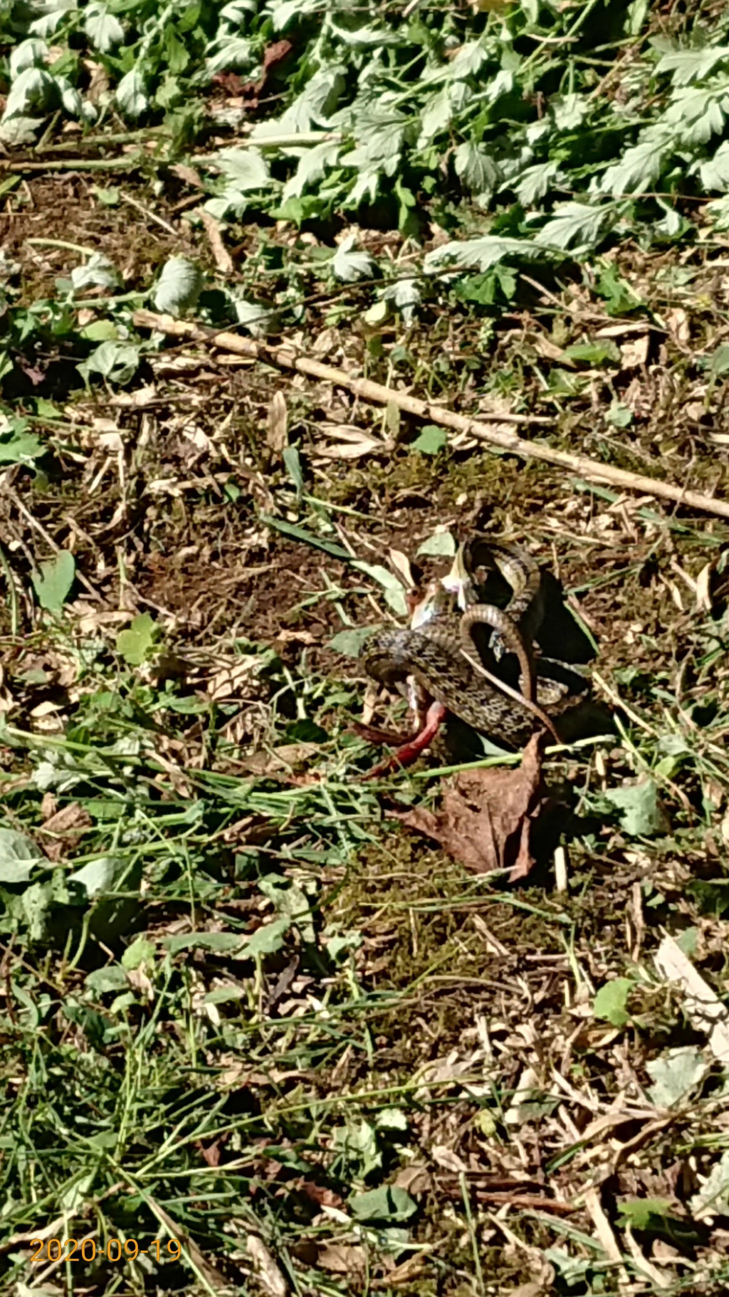 2020年9月19日 / 最終更新日時 : 2020年10月13日 shimasakimitsunori 日々是好日 ヘビがカエルを飲み込んでいるところを始めて見ました2020-09-19 昨日はまとまった雨が降ってほっとした。今日は草刈りです。 草を刈ったあとに、トンビが来るのは、まあ分かる。 シマヘビがトノサマガエルを飲み込んでたのは、初めて見ました。 FacebookXBlueskyHatenaCopy コメントを残す コメントをキャンセルメールアドレスが公開されることはありません。 ※ が付いている欄は必須項目ですコメント ※ 名前 ※ メール ※ サイト 次回のコメントで使用するためブラウザーに自分の名前、メールアドレス、サイトを保存する。 上に表示された文字を入力してください。 Δ