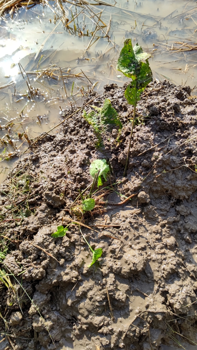 水のある湿地帯で根が広がるような柔らかい地面だと大きく育ちます。
