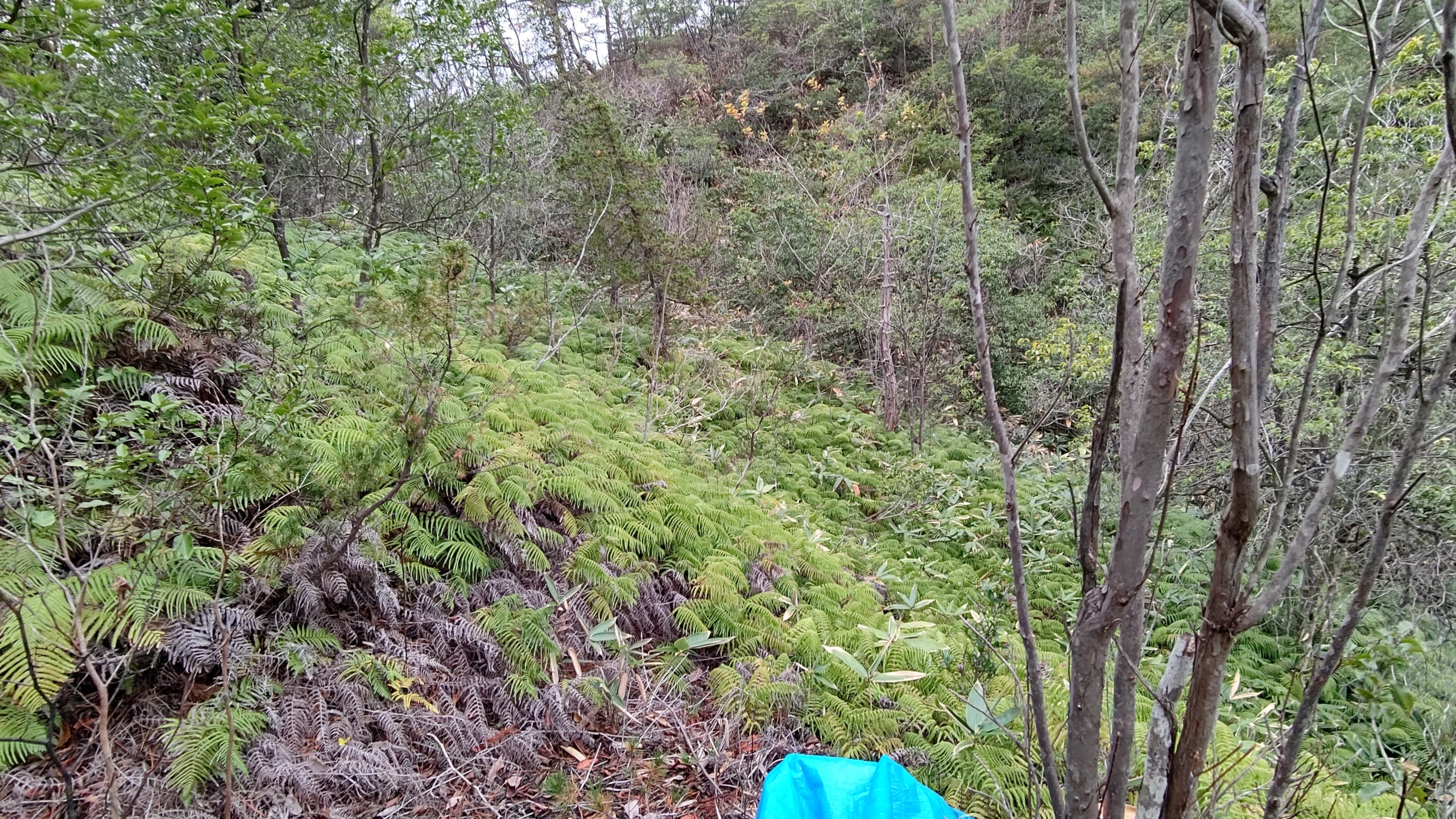 能登半島の山は低いけれど、ウラジロは急な斜面にあったりするから。