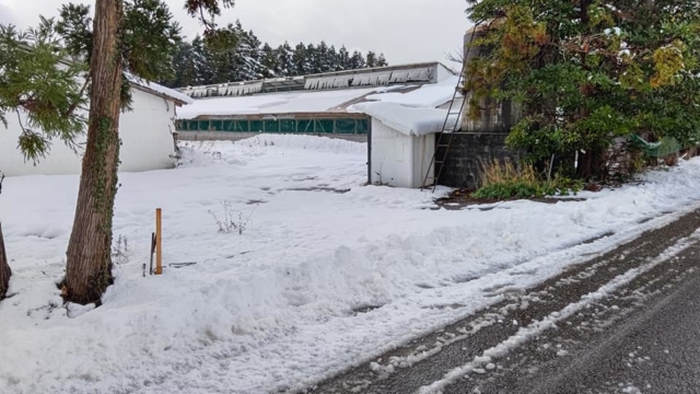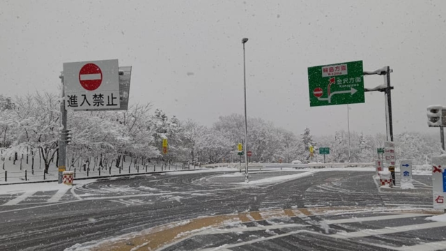下の写真は12月14日の「のと里山海道」の別所岳SAです。ドカ雪になりました。
