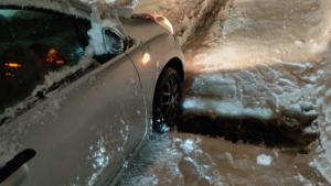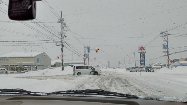15時2分 富山県氷見市の交差点で自動車が立ち往生していました。車中泊で移動する予定ですが、水と食料の確保が渋滞に巻き込まれると困難になるので、今のうちに買い込んでおくことにします。