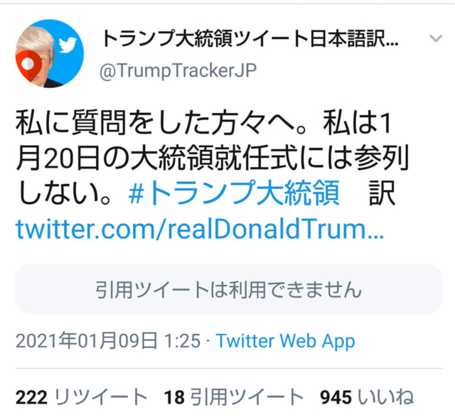 アメリカ大統領選挙に関係する内容の発信は1月20日まで控えます-2021-01-10