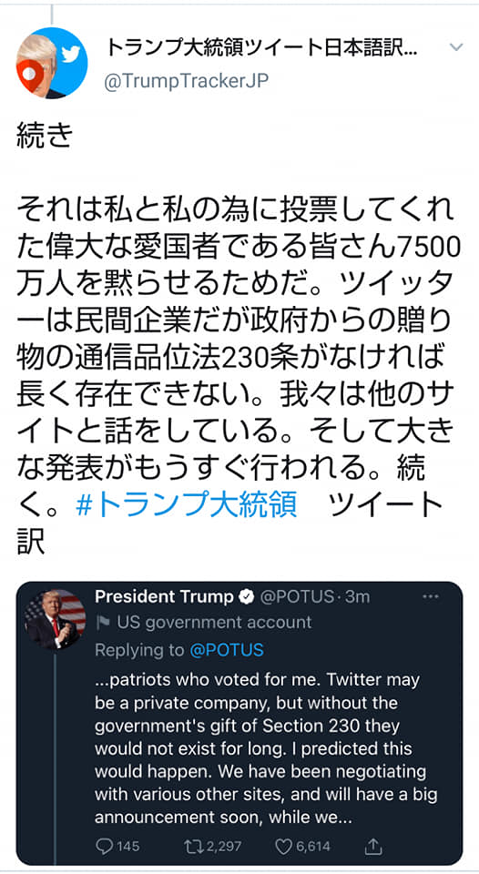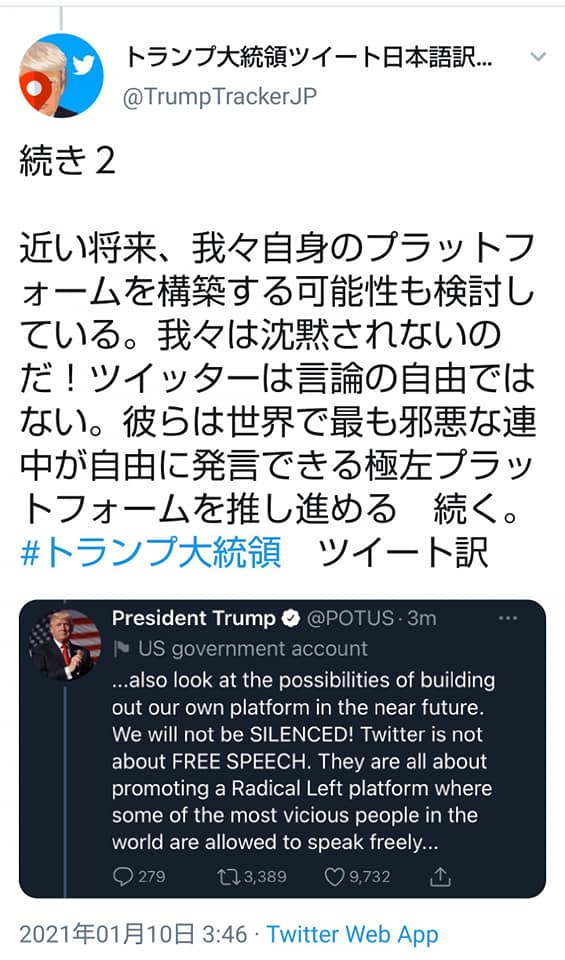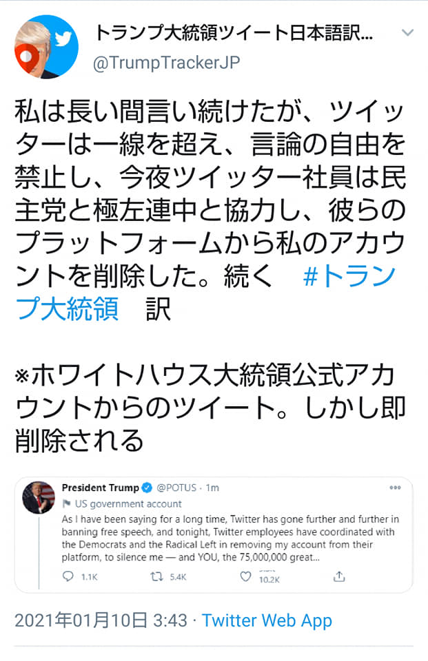 トランプ大統領の発信するツイッターアカウントが、個人からホワイトハウス大統領公式アカウントに変わった点に注目。重要な内容を発信している。個人のアカウントは確かに凍結されていますが、このホワイトハウス大統領公式アカウントの内容は普通ではないと私は直感しました。
