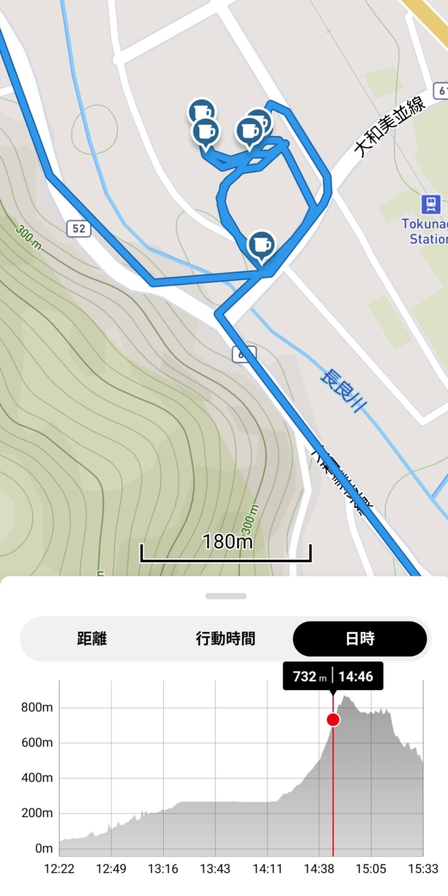 Yahoo!カーナビは、走行軌跡が分からないので、登山用アプリのヤマップを併用しました。