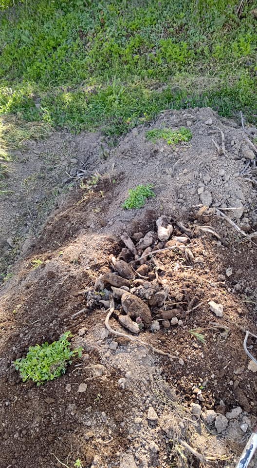 今日残りのヤーコンの種イモを埋めようとしたら、イノシシかな?荒らされた跡だった。それでヤーコンイモをうねの中に埋めて、その上にペニーロイヤルミントを植えた。西洋わさびが埋めてあるうねの被害がなかったので、西洋わさびを埋めるうねも作ってみた。さてどうだろう?イノシシは一度エサが食べられる場所だと覚えたら、何がなんでも侵入するよ。