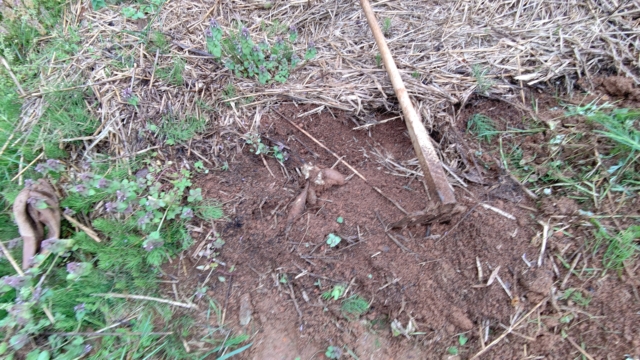 このヤーコンは2018年から自家増殖をしている在来種です。今年で自家増殖3年目です。試験的にイモを切り離さないで土の中に埋めっぱなしにして、能登半島の自然の環境だと、越冬して発芽出きるのか?