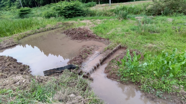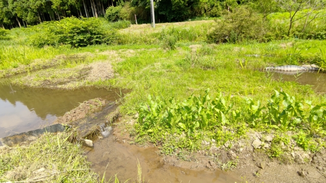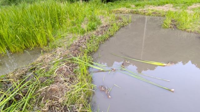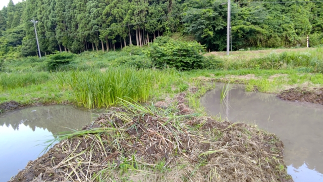 今日はここまで。山盛りになっている白い地下茎は「オギ」です。秋に白い穂が出ると見た目はススキと似てますがススキは大きな株になります。ここは10年以上の耕作放棄地だったので、地中50~60cmの深さまで2層3層でオギの地下茎が縦横無尽に伸びてます。数年前に一度3ヶ月ほどかけて全面掘り起こしてますが、取り残したものが増えました。