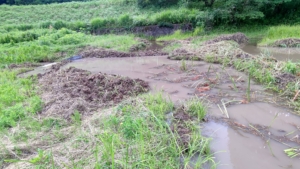 今日はここまで。山盛りになっている白い地下茎は「オギ」です。秋に白い穂が出ると見た目はススキと似てますがススキは大きな株になります。ここは10年以上の耕作放棄地だったので、地中50~60cmの深さまで2層3層でオギの地下茎が縦横無尽に伸びてます。数年前に一度3ヶ月ほどかけて全面掘り起こしてますが、取り残したものが増えました。