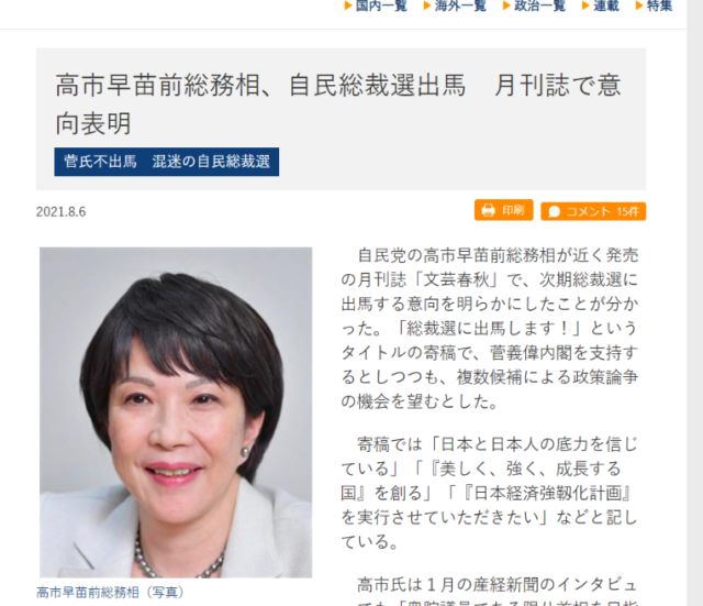 (8月6日 高市さん総裁選立候補表明)