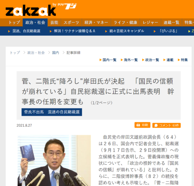 最後に資料として今までの経緯をZAKZAKの自民党総裁選特集の一部の記事を使ってまとめます。