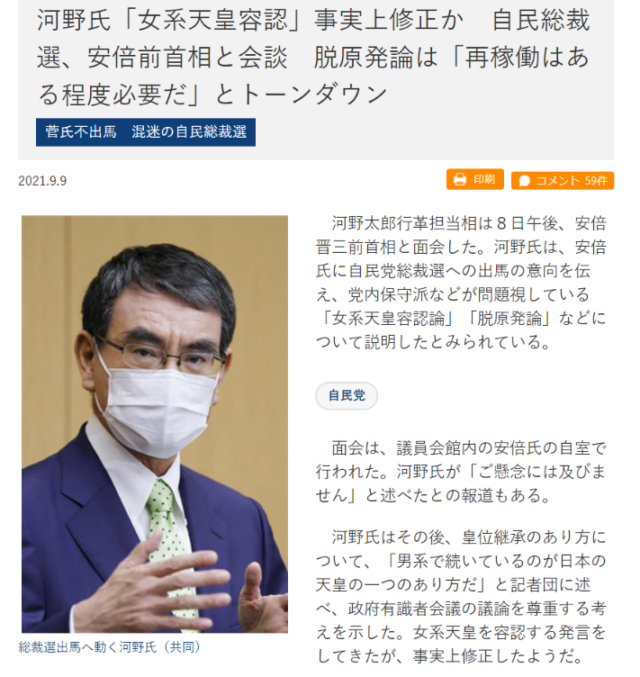 (9月9日 河野さん総裁選立候補表明)