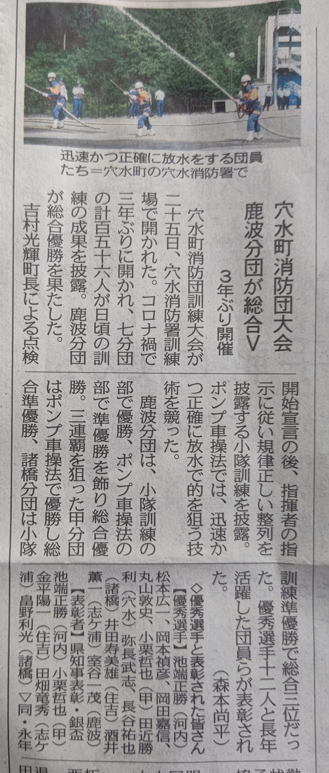 2022年6月26日 / 最終更新日時 : 2022年11月26日 shimasakimitsunori 日々是好日 6月25日に穴水町消防団訓練大会がありました-2022-06-26 甲(かぶと)分団はポンプ車操法で優勝しました。選手の皆さんおめでとうございました。 7月30日に消防学校で石川県大会があります。画像は北陸中日新聞の紙面です。 DSC_8547 それで個人的にいろいろと予定を変更させる必要が出てきました。 今月中に東京の八王子にある武蔵野陵に行ってきます。 https://www.kunaicho.go.jp/ryobo/guide/124/?fbclid=IwAR35BdO_MD8C42Z3OfSJd5L-6gDV5yS_VsJ_UNeaZtCRTodVpUbD2s6-mAk FacebookXBlueskyHatenaCopy コメントを残す コメントをキャンセルメールアドレスが公開されることはありません。 ※ が付いている欄は必須項目ですコメント ※ 名前 ※ メール ※ サイト 次回のコメントで使用するためブラウザーに自分の名前、メールアドレス、サイトを保存する。 上に表示された文字を入力してください。 Δ