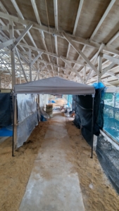 倉庫の中の掃除と雨雪避けにテントを張りました-2022-12-27