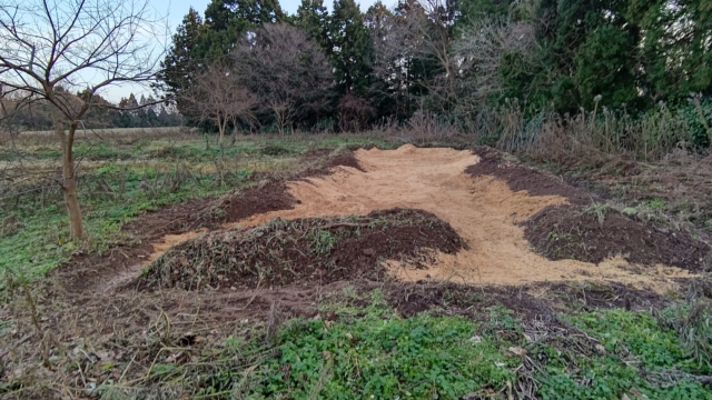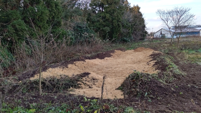 もみがらは外に出ていていたものなので、水分をふくんでいます。その方がたい肥化は早いです。今日は15袋使いました。来週の水曜あたりから雪らしいので、どんどん刈り草とかもみ殻とか積んでいきます。1mくらい積み上げればカブトムシの幼虫のすみかになります。