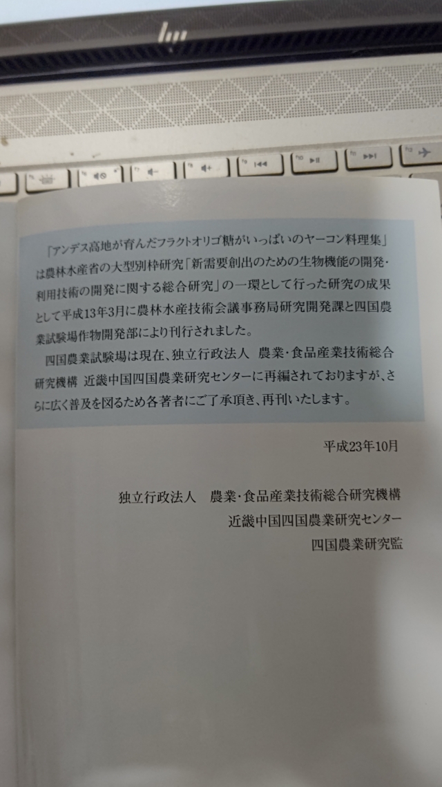 日本ヤーコン協会の月橋理事長と電話でヤーコン料理の話をしていて「ヤーコン料理集」を紹介してもらったので買いました。私が日本ヤーコン協会の勉強会で茨城大学農学部に行ったのは2020年2月ですが、懇親会で見聞した内容のベースみたいな感じでした。この時の様子は自分の個人サイトで数回に分けて軽くまとめてますが、教わったことを実際に自分でもやってみようとすると、結果が出るまで2~3年はかかりますね。