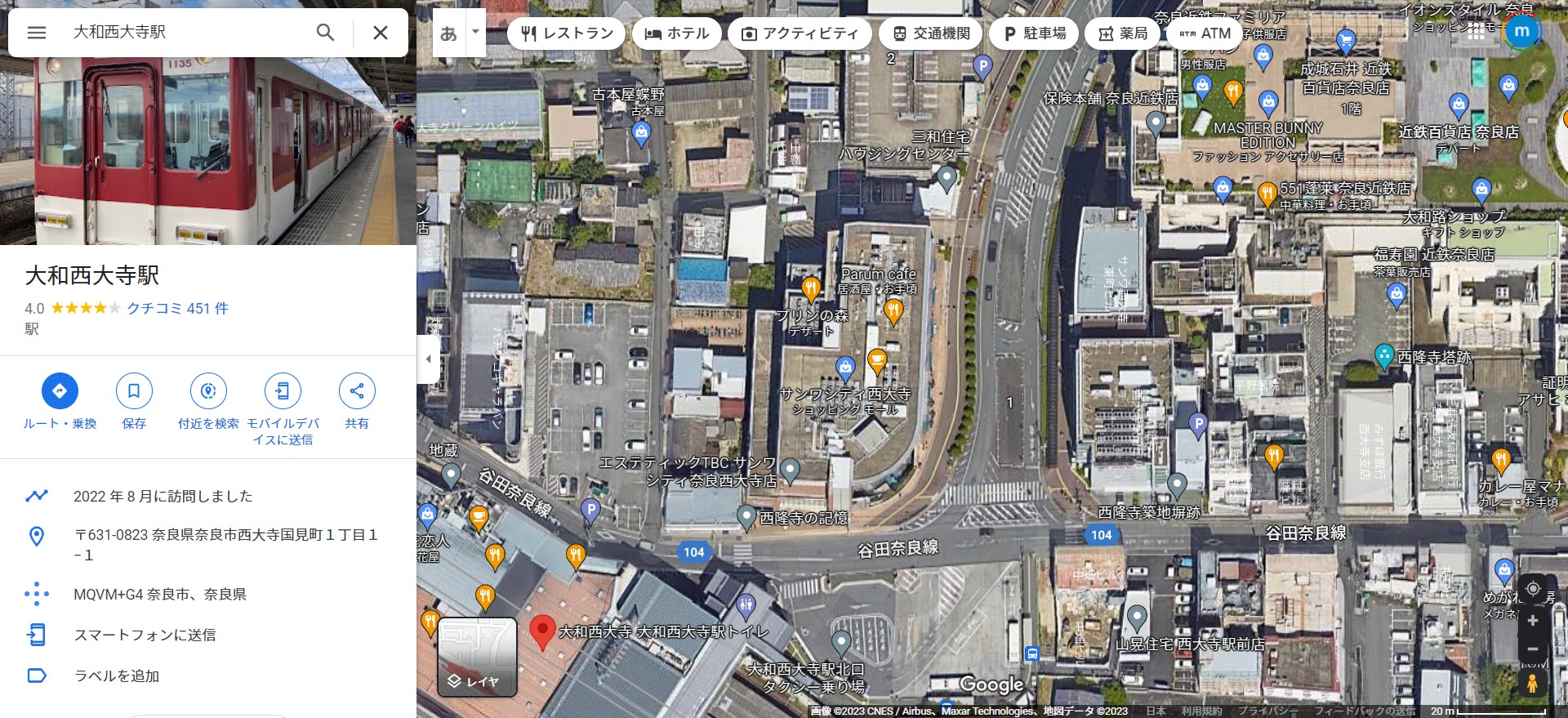 2023年3月1日 / 最終更新日時 : 2024年5月23日 shimasakimitsunori Facebook 奈良県まで出かけてきます。私は時速35kmで計算しています-2023-03-01 晴天です。奈良県まで出かけてきます。グーグルマップの一般道での移動時間は1時間50kmくらいで計算していますが、高速と違うのでまず無理です。私は35kmで計算しています。ということで行ってきます。 FacebookXBlueskyHatenaCopy コメントを残す コメントをキャンセルメールアドレスが公開されることはありません。 ※ が付いている欄は必須項目ですコメント ※ 名前 ※ メール ※ サイト 次回のコメントで使用するためブラウザーに自分の名前、メールアドレス、サイトを保存する。 上に表示された文字を入力してください。 Δ