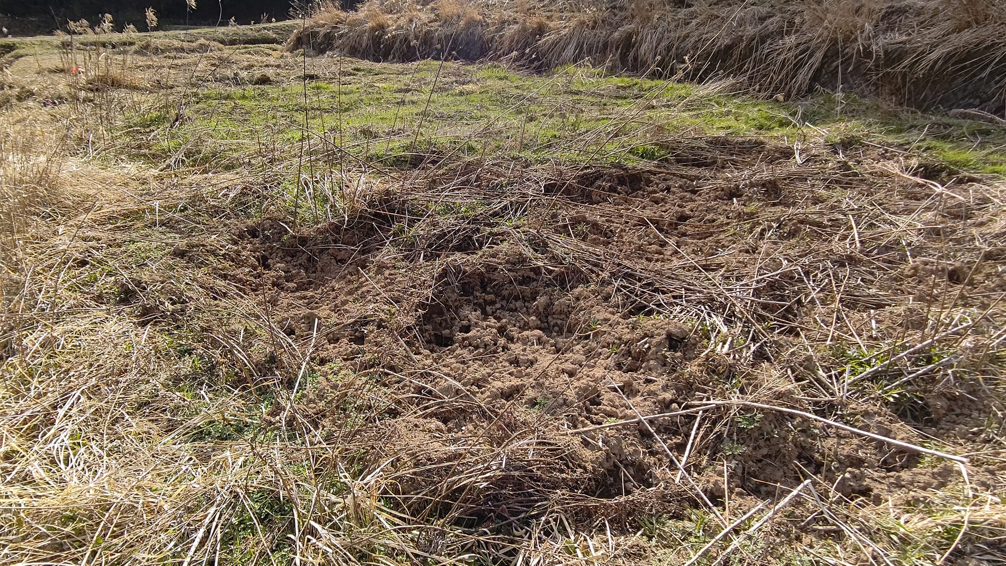 キクイモの場所だけを食べ尽くすつもりで掘り起こされてました。でもわずかに残ったキクイモは発芽してきます。