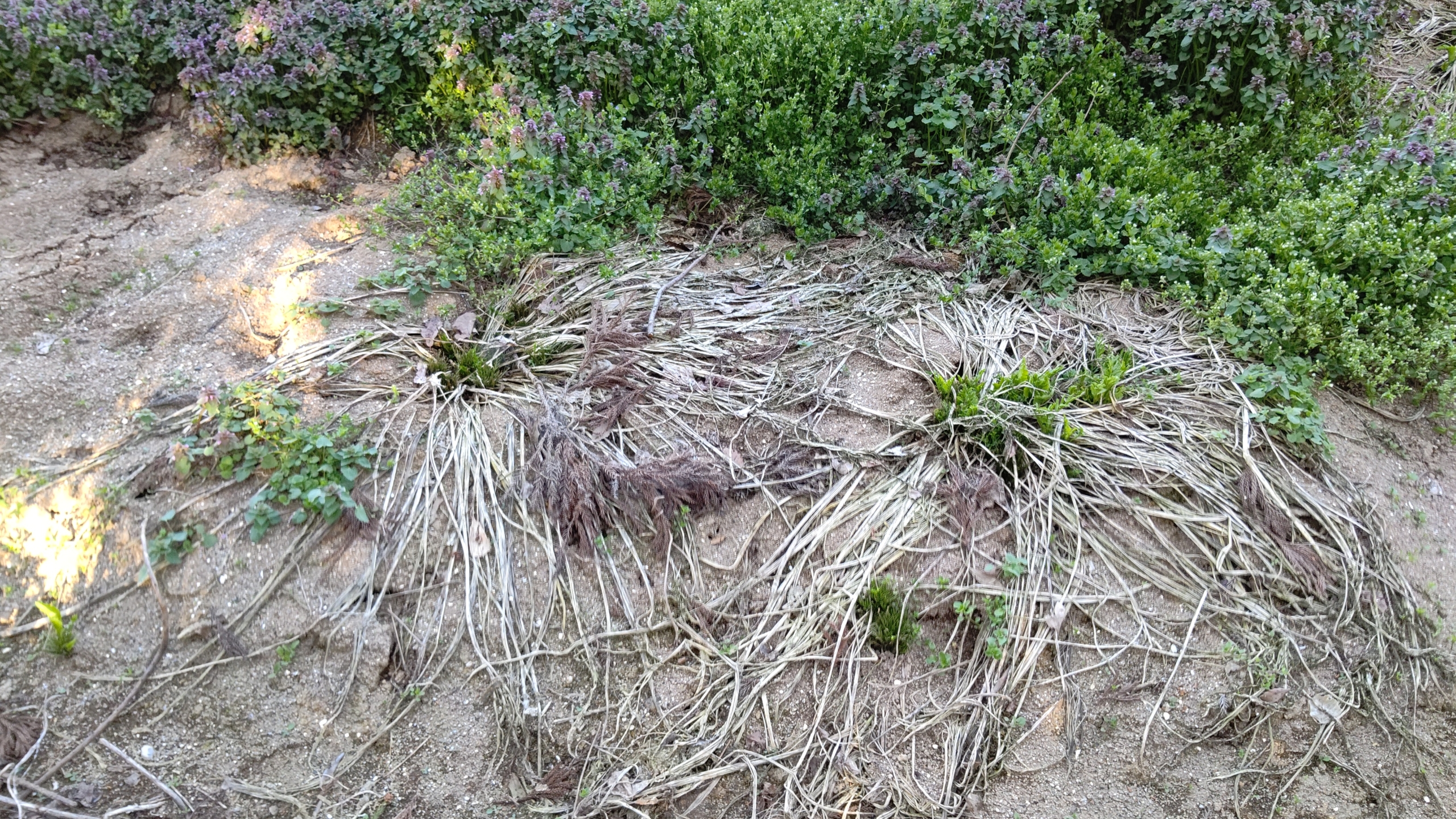 セイタカアワダチソウが消えて最初に現れたのがヒメオドリコソウなどの雑草でした。