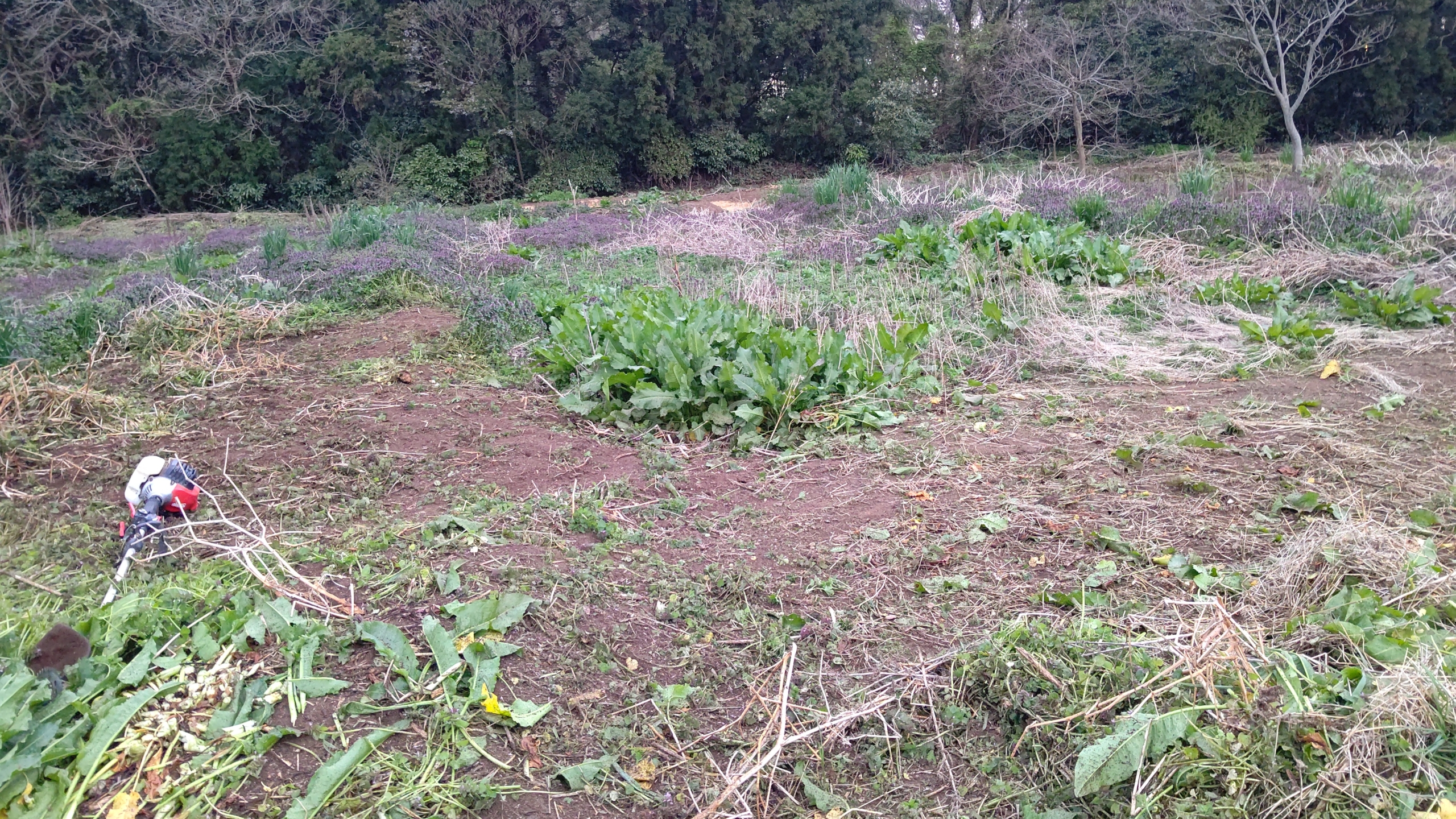 草刈り機を使う作業は終わった。次は開墾鍬で雑草の根を掘り起こす作業です-2023-04-10