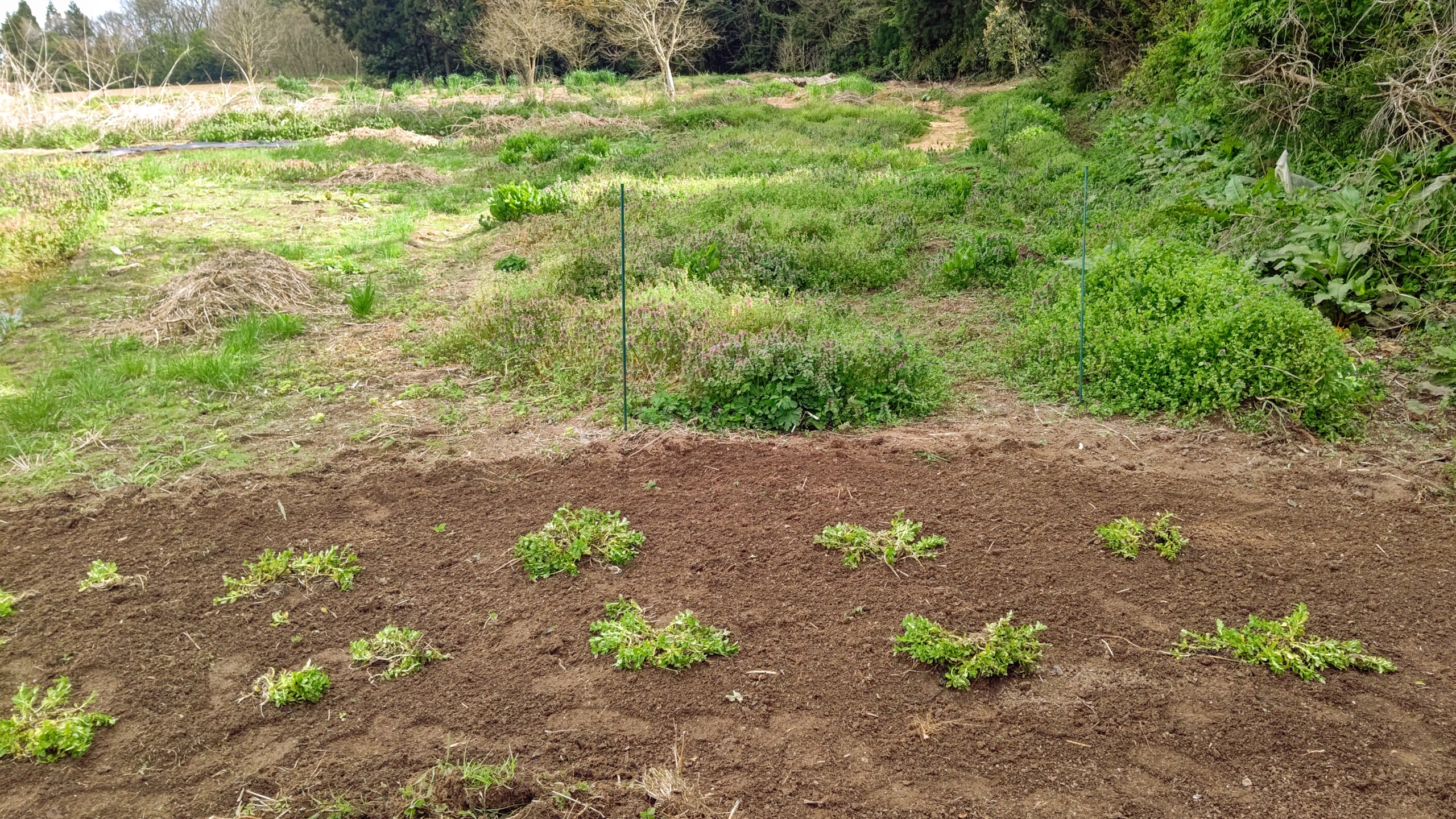 適当に切り取って地面に置いて、土を適当にかぶせる。移植作業はこれだけです。