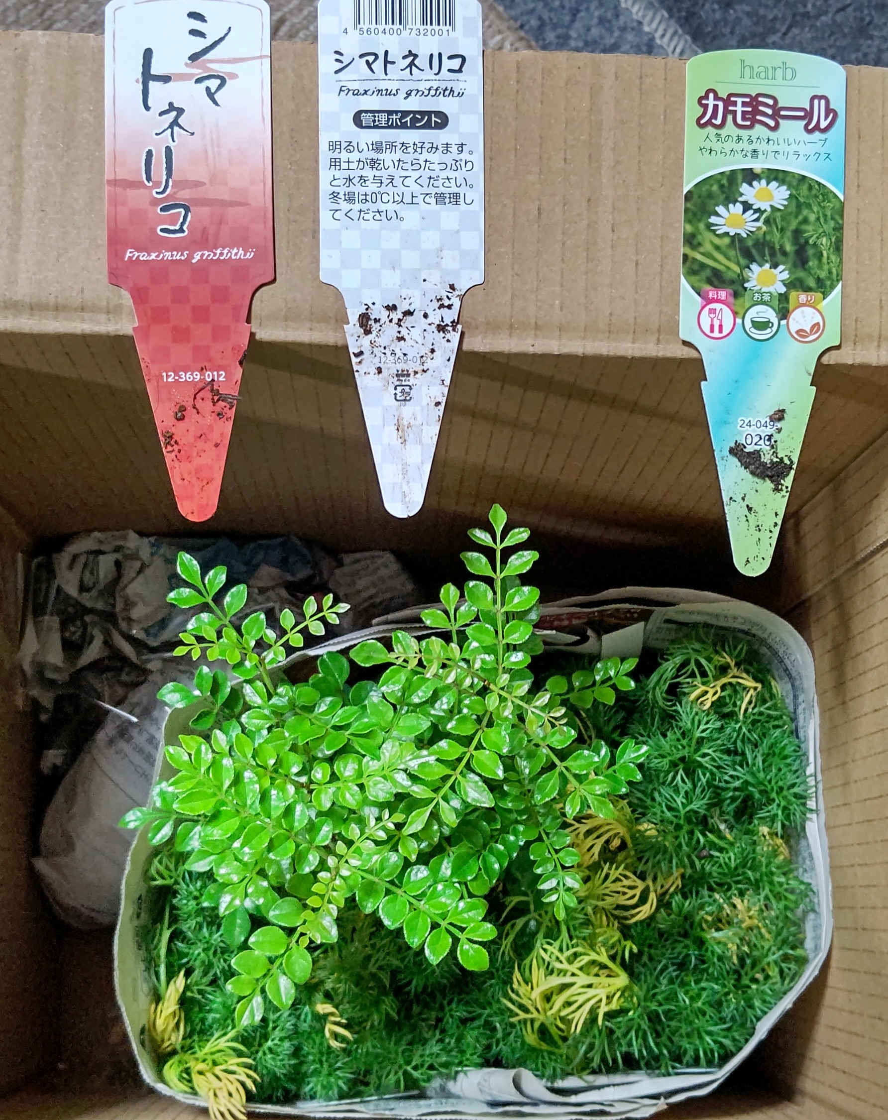 カブト虫の幼虫のすみかを作る作業と並行してシマトネリコ2本とジャーマンカモミールを4株注文していました-2023-04-18