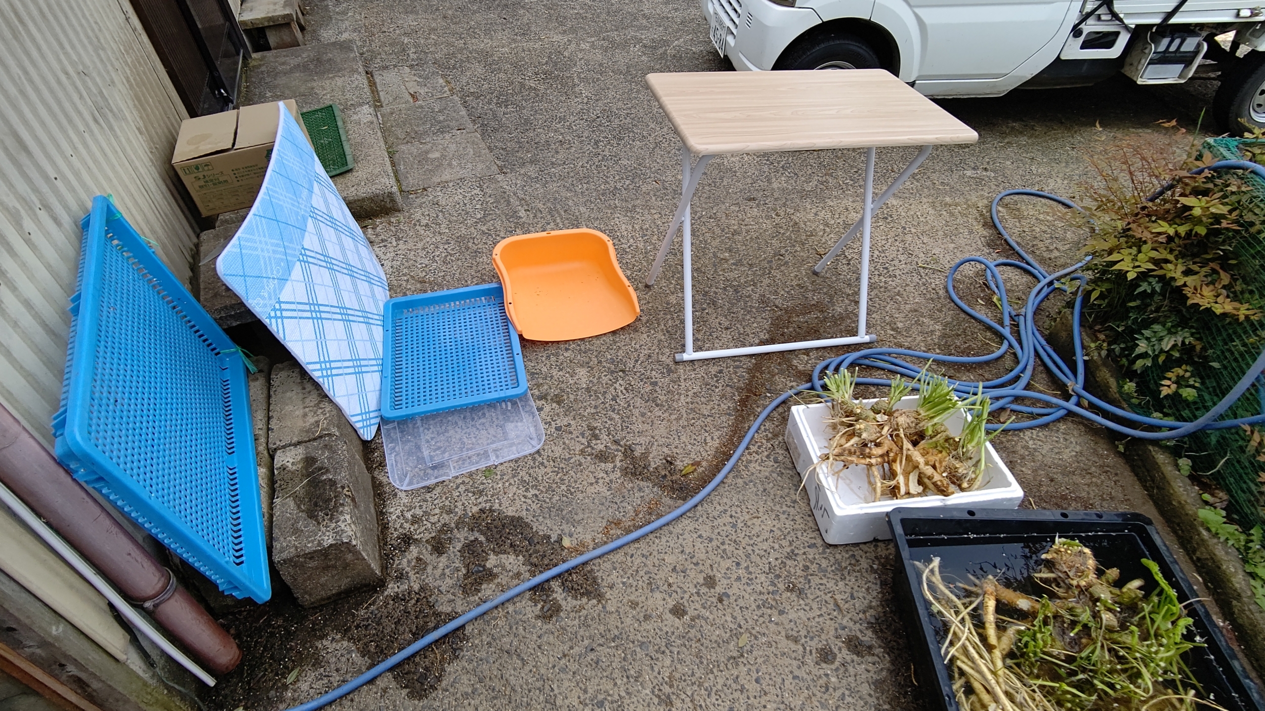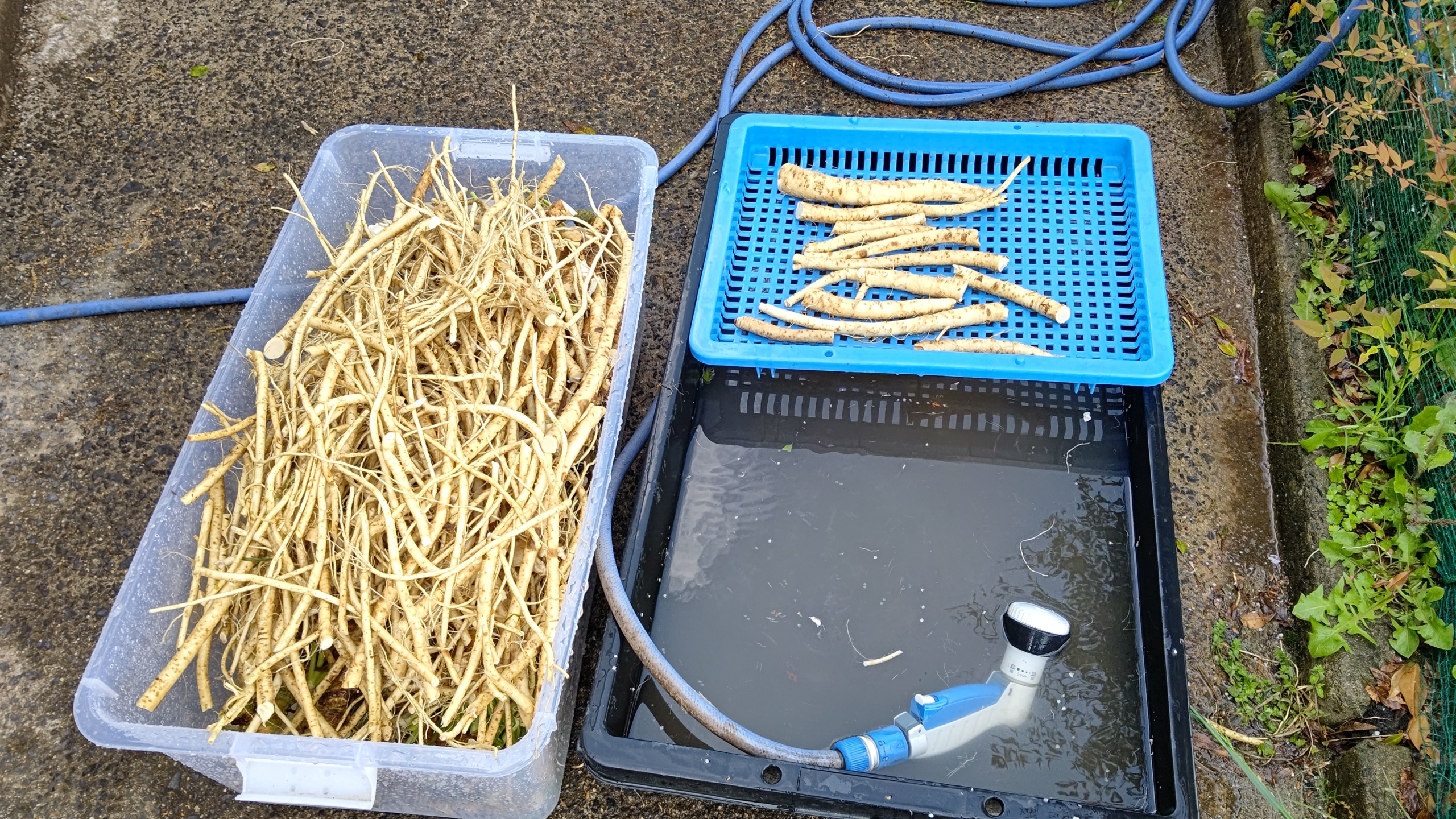 2023年4月30日 / 最終更新日時 : 2024年5月25日 shimasakimitsunori Facebook 2021年2月に植えた西洋わさびです。3年目の今年の春に掘り起こして株分けしました-2023-04-30 本当は根っこの部分が太いものが欲しかった。 4月28日に4株掘り起こしましたが衣装ケース1箱分で10キロくらいの苗ができました。 西洋わさびは地面に埋めれば細い根っこも全部発根してきます。 商品価値のある大きなものを作る方法とか作業効率を上げるとかいろいろと改善することがありました。 使えそうなものはこの前のものと合わせて1キロくらいでした。 \ 最新情報をチェック / FacebookXBlueskyHatenaCopy コメントを残す コメントをキャンセルメールアドレスが公開されることはありません。 ※ が付いている欄は必須項目ですコメント ※ 名前 ※ メール ※ サイト 次回のコメントで使用するためブラウザーに自分の名前、メールアドレス、サイトを保存する。 上に表示された文字を入力してください。 Δ
