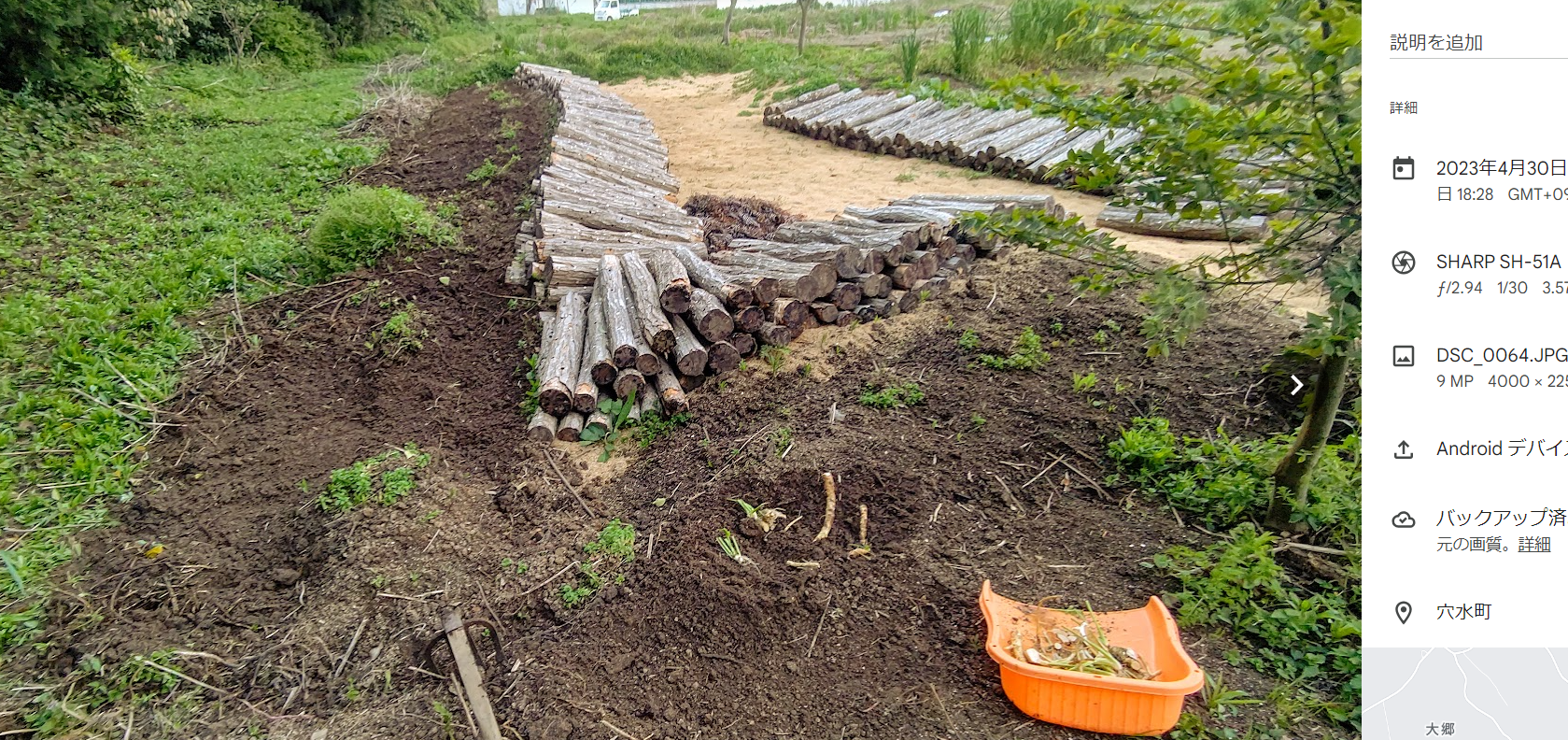 山わさびをイノシシ避けで埋めてみました-2023-04-30