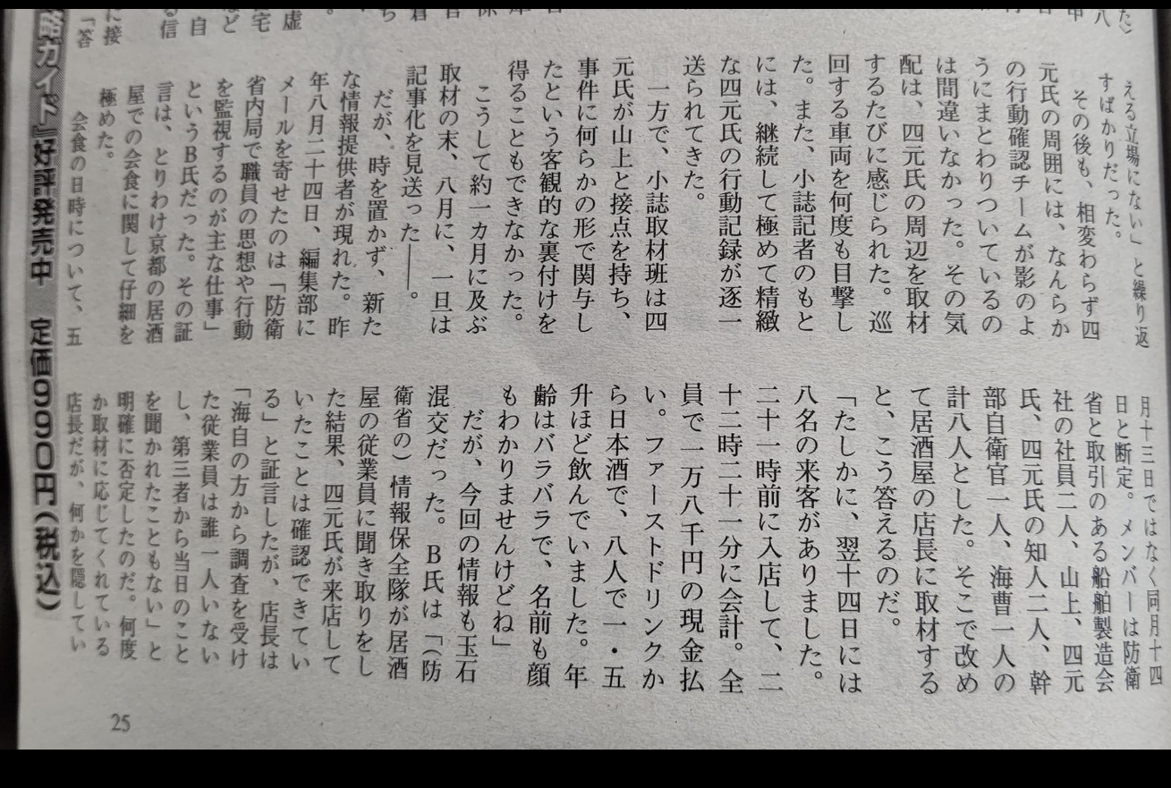 2023年5月13日 / 最終更新日時 : 2024年5月25日 shimasakimitsunori Facebook 京都の居酒屋で8人で1万8千円は安くないですか?-2023-05-13 ターサン出版の「奈良の変」を注文しました。 私は週刊文春の記事は、デカい釣りだと考えてます。 今のところWILLだけが反応してますが、共感できた部分がひとつだけありました。 それは京都の居酒屋で8人で1万8千円は安くないですか?のところでした。 日本酒がひとり2000円ちょっとで飲める。 京都に行くことがあったら飲みに行こうと思います。 FacebookXBlueskyHatenaCopy コメントを残す コメントをキャンセルメールアドレスが公開されることはありません。 ※ が付いている欄は必須項目ですコメント ※ 名前 ※ メール ※ サイト 次回のコメントで使用するためブラウザーに自分の名前、メールアドレス、サイトを保存する。 上に表示された文字を入力してください。 Δ