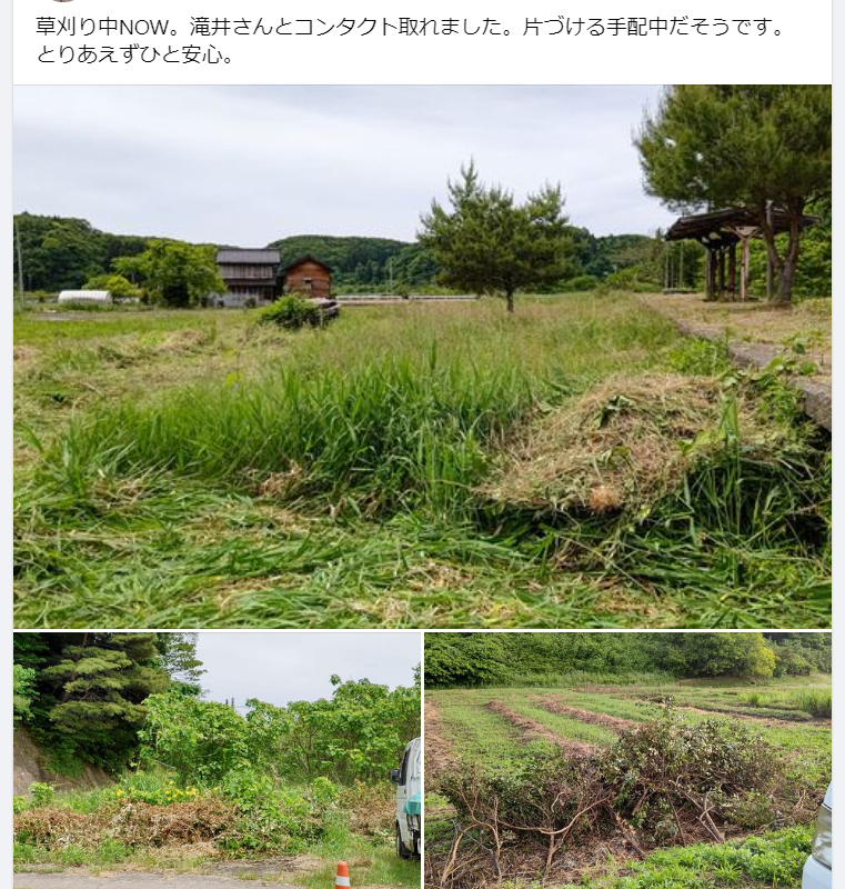 草刈り中NOW。滝井さんとコンタクト取れました