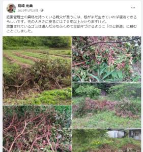 株を掘り起こされる前に再生に向けて保全そちを始めます。
