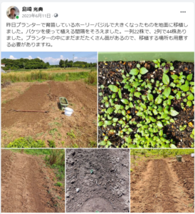 2023年6月12日 / 最終更新日時 : 2024年5月25日 shimasakimitsunori Facebook 赤クローバーは自生していたものを増やしています-2023-06-12 一年前の写真と現在の写真。斜面の下に植えたのは、イノシシよけのペニーロイヤルミントです。 あと2年もすれば上の道路まで覆うと思います。 一輪車でばらまいているのは、もみ殻ぼかしです。 赤クローバーは自生していたものを増やしています。 有機JASの基本原則のやり方ですが、こういうことをしていると怪しい有機野菜は見抜けるようになりますよ。 FacebookXBlueskyHatenaCopy コメントを残す コメントをキャンセルメールアドレスが公開されることはありません。 ※ が付いている欄は必須項目ですコメント ※ 名前 ※ メール ※ サイト 次回のコメントで使用するためブラウザーに自分の名前、メールアドレス、サイトを保存する。 上に表示された文字を入力してください。 Δ