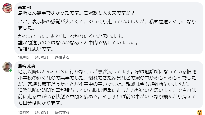 2024年1月22日 / 最終更新日時 : 2024年5月31日 shimasakimitsunori 2024能登半島地震 下り坂でスピードが出る場所ですが、夜の暗い時に落ちたみたいです-2024-01-22 気をつけねば。 矢印とカラーコーンのない左の路肩から入ったかな? \ 最新情報をチェック / FacebookXBlueskyHatenaCopy コメントを残す コメントをキャンセルメールアドレスが公開されることはありません。 ※ が付いている欄は必須項目ですコメント ※ 名前 ※ メール ※ サイト 次回のコメントで使用するためブラウザーに自分の名前、メールアドレス、サイトを保存する。 上に表示された文字を入力してください。 Δ