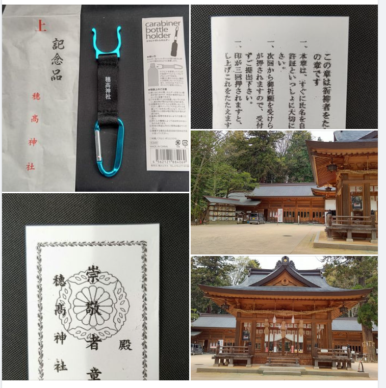 参拝3年ごとに記念品をもらえますが、今年はカラビナ付きペットボトルホルダーでした。山歩きにはいいかもしれない。
