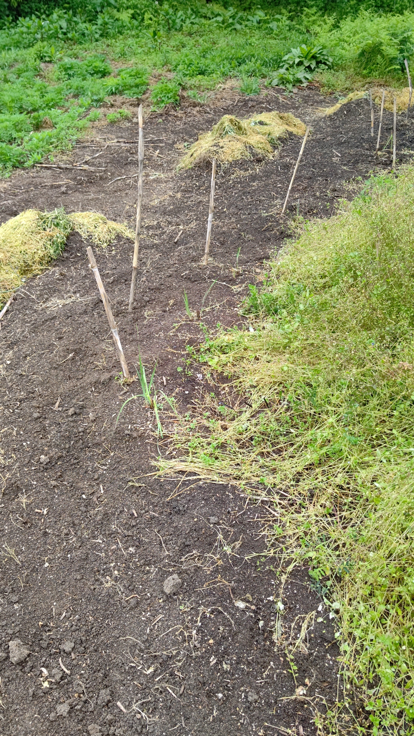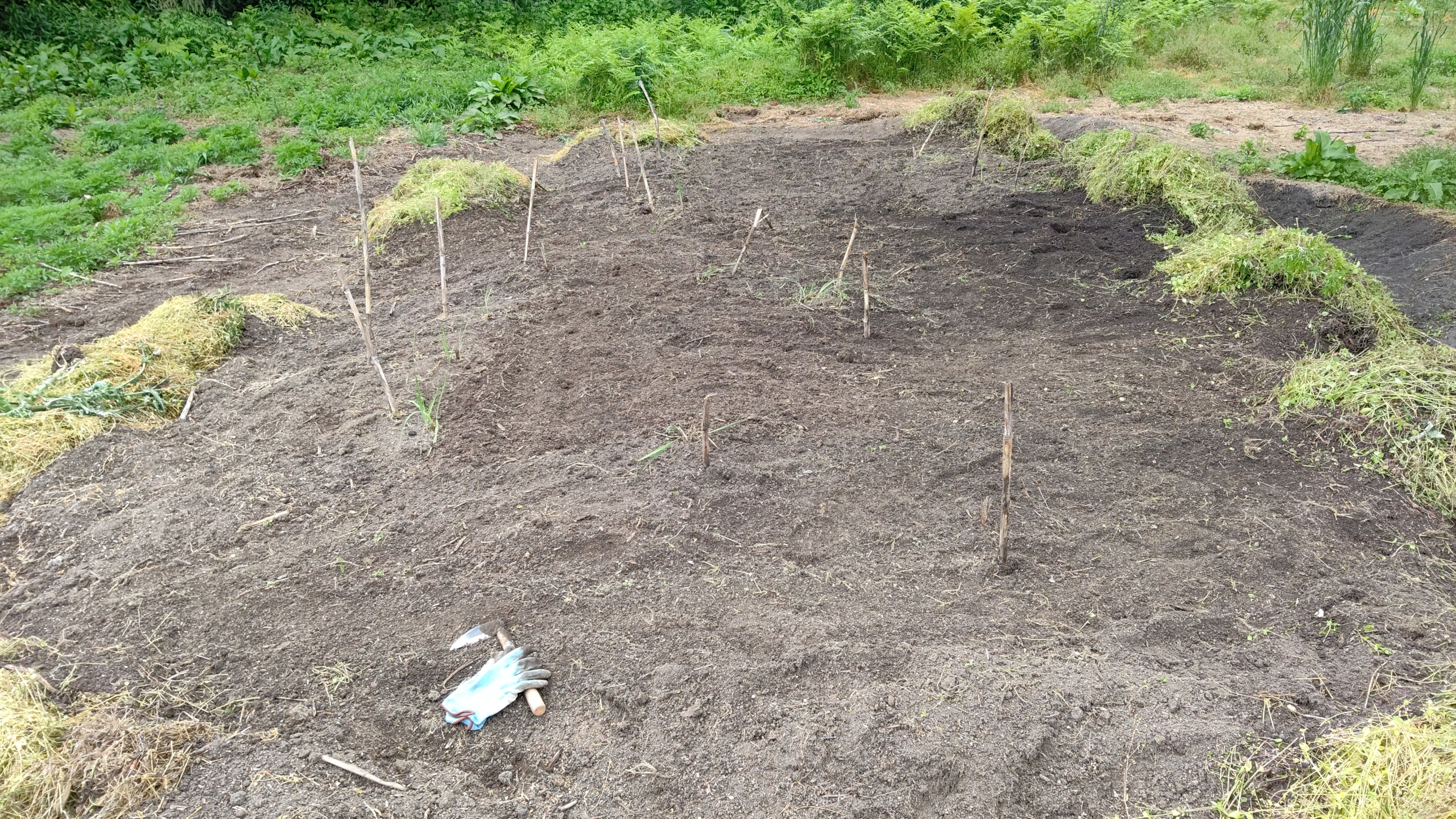 そのあと春の雑草に埋めつくされましたがそのまま様子を見てました。いくつか消えましたが生き残ってくれました。やっぱり株の周りの雑草は取らないと大きく育ちませんね。来年春に花が咲くように、昨日と一昨日に雑草を刈り取って野アヤメの回りを囲んでみました。雑草の下にはミミズがいるので、これからはミミズの糞が肥料代わりです。ミミズといえばイノシシなので、イノシシ対策も゙これからします。
