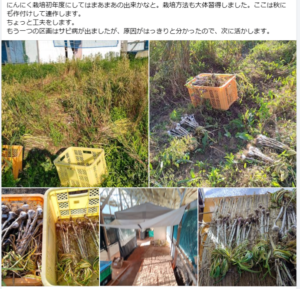 それまで栽培していたヤーコンはイノシシ被害で全滅しました。それで買い直しましたが、この種いもから育てるのは経験者向きですね。初めて栽培される方はポット苗を購入した方がいいです。9月14日に最初のイノシシの被害が出ました。この時期はちょうどヤーコンが成長してイモが出来始める時期です。山わさび(ホースラディッシュ)の隣に植えましたが、ヤーコンだけ食べられた。かろうじて生き残ったヤーコンの種いもを越冬保存で翌年栽培して、また同じ9月頃にイノシシにやられました。この年はペニーロイヤルミントを加えましたが、そのすき間を狙われた。こりずに生き残ったヤーコンの種いもを保存して今年はホーリーバジルを追加でイノシシ対策をして今の種いもで3年目のヤーコン栽培です。