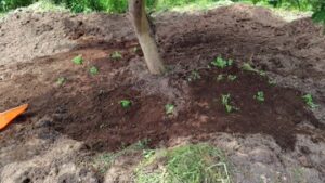 外周の境界になるところのセイタカアワダチソウの根っこの除去をしています-2025-05-21