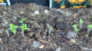 緑色のネットは片づけました ペニーロイヤルミントという芝生みたいに広がるミントを増やすために、その周りの雑草だけを草刈り機で地面から削ってます。 やっと畑らしくなりました。