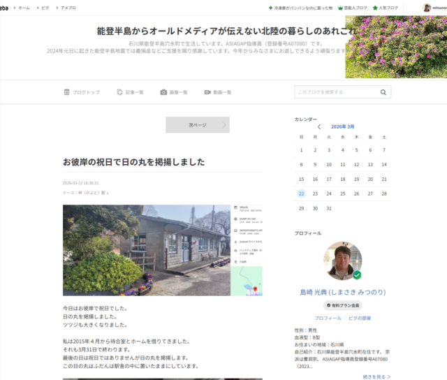 2026年2月からネットショップまで展開できる収益を考えたビジネスサイト「superroots-wellness.com」を立ち上げたので、サイトの使い分けを説明しておきます。現在は私のSNSアカウントではX(旧ツイッター)を速報用に利用しています。フェイスブックやインスタグラムはなりすまし防止用にアカウントは維持していますが今の使い方はROM専用です。アメブロはタイトルを3月27日に「能登半島からオールドメディアが伝えない北陸の暮らしあれこれ」と変更しました。速報用で使っているX(旧ツイッター)やこのサイトを再構成して作った記事が中心です。このサイト、notopyi.jp はそれら全部を統合させたメインサイトになります。ひとりで全部の運営するのは大変なので、google AIのgeminiに記事の制作作業を手伝ってもらっています。以上です。