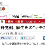 2013年8月3日 / 最終更新日時 : 2019年9月28日 shimasakimitsunori 日々是好日 「手口」という言葉と起承転結の「転」 2013-08-03 (この記事は8月2日付のエントリー(投稿記事)の 「麻生副総理を陥れた共同通信の大罪について」の続きです。) 私には日本のマスコミや野党が麻生副総理に対して 謝罪しろ!だの辞任しろ!だのと言っていることが全く理解出来ませ […]